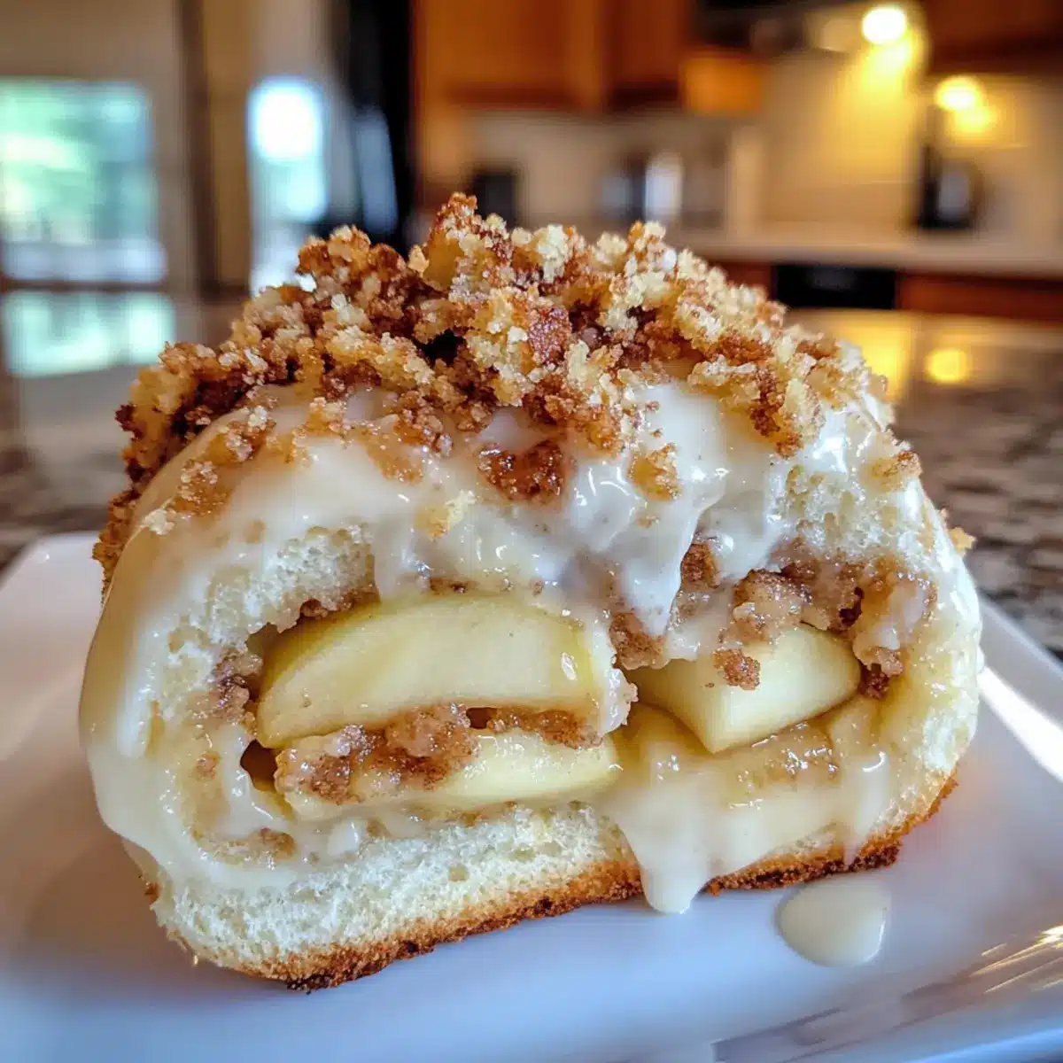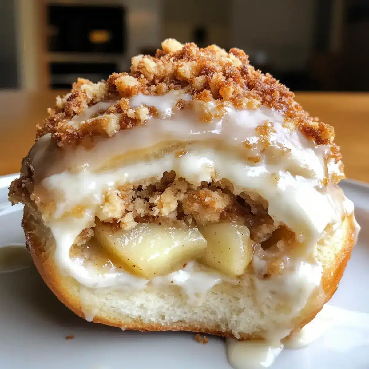 Cozy Apple Cheesecake Buns with Crumble Topping & Sweet Glaze