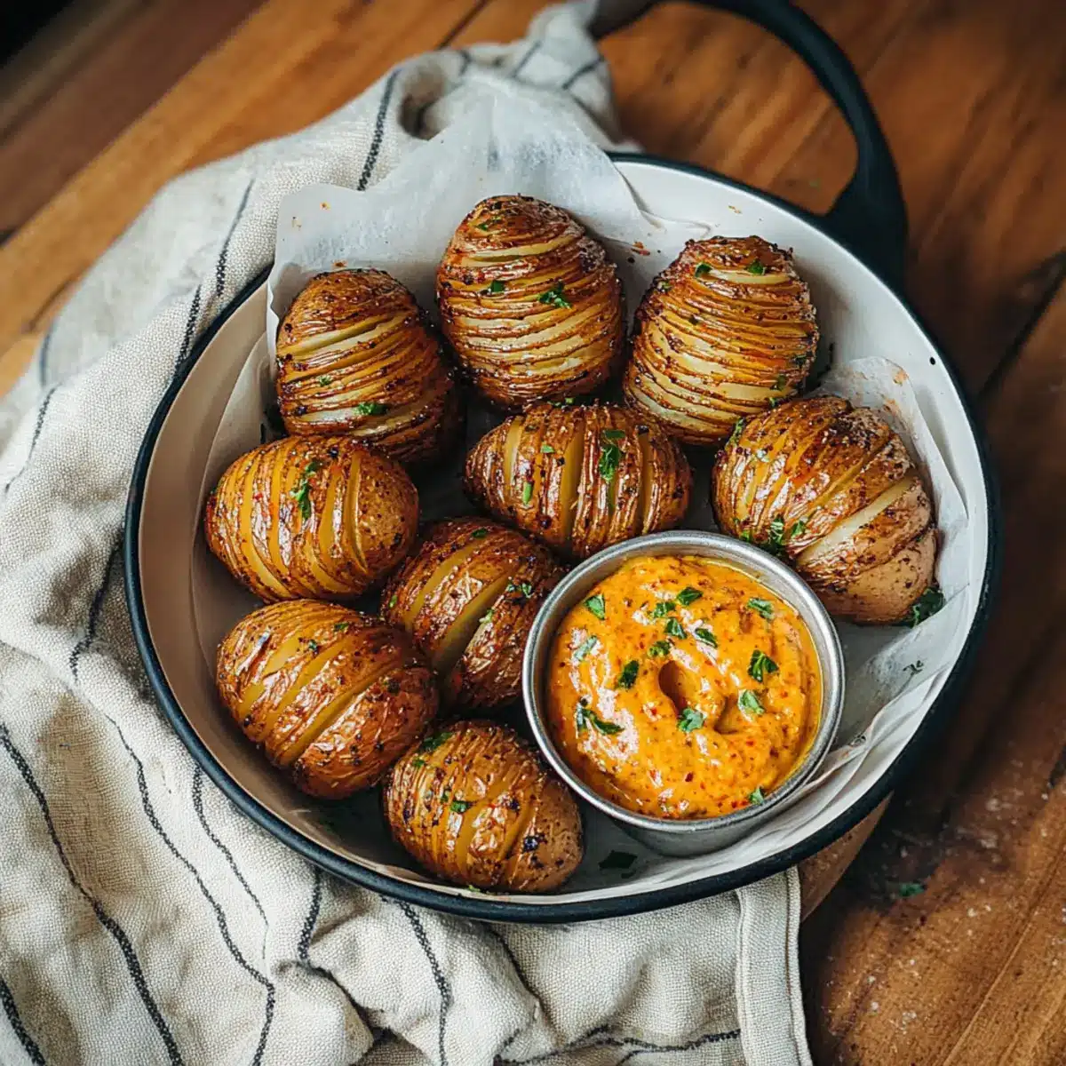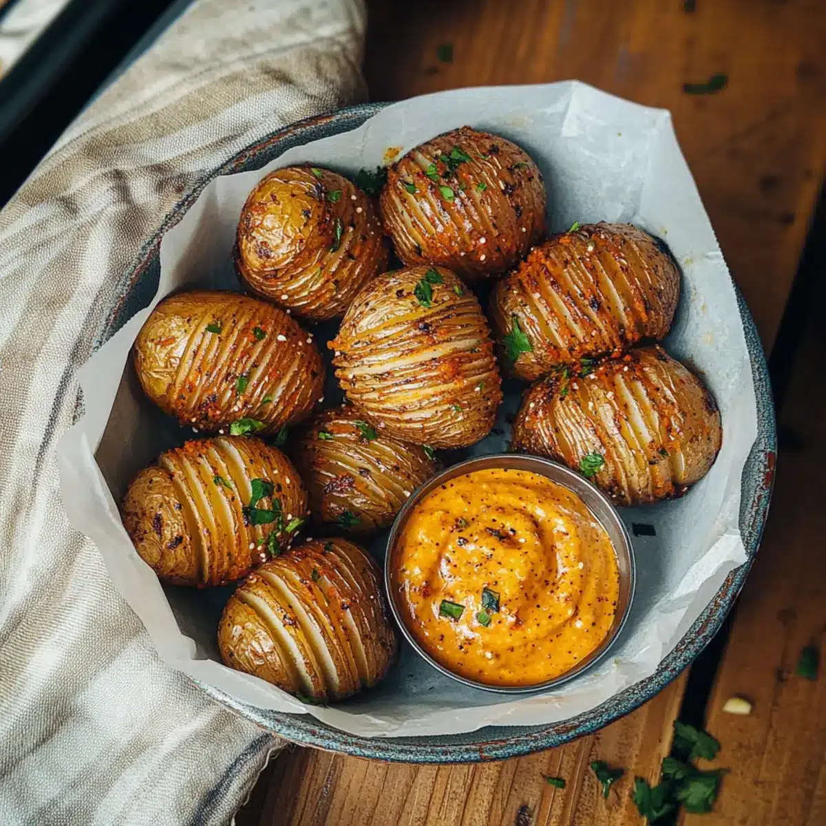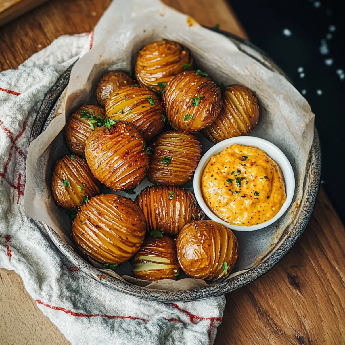 Baked Mini Hasselback Potatoes with Zesty Vegan Mayo Dip