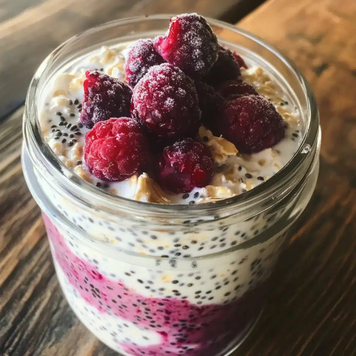 Storage Friendly: Utilize airtight containers to maintain freshness and avoid spills. Your berry chia overnight oats will stay delicious in the fridge for up to five days.