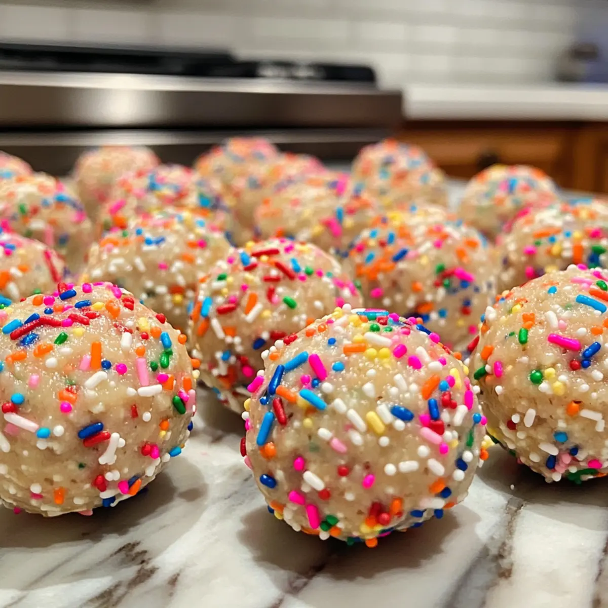 • Gentle Mixing: When folding in the rainbow sprinkles, be gentle to avoid color bleeding. This maintains the fun, vibrant look of your Birthday Cake Batter Protein Balls.