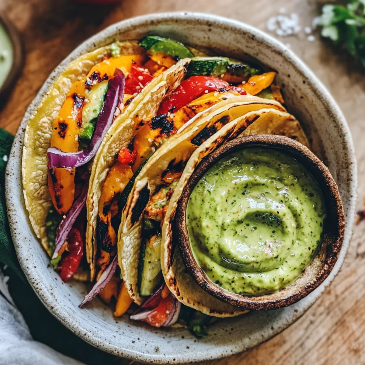 Grilled Tacos: Perfectly complements the smoky protein, balancing out the meal with creamy, zesty elements that brighten every bite.