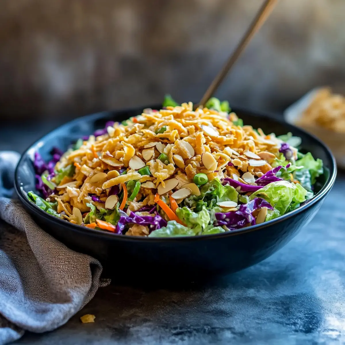 Nutty Alternatives: Instead of almonds, try cashews or peanuts for a unique taste. These alternatives not only give a different crunch but will also play beautifully with the salad’s Asian dressing.