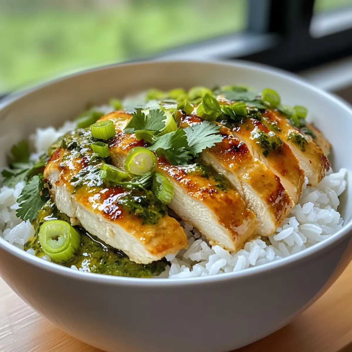 - Scoop rice into bowls, top with chicken and sauce, and garnish with fresh herbs.