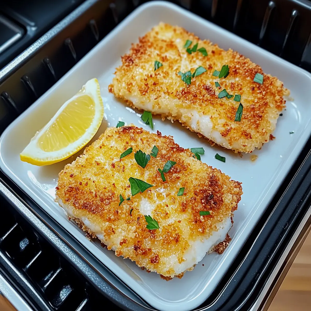Light Spray of Oil: A light mist of cooking oil on top of the breaded fillets is crucial. This enhances the crispiness and gives a beautiful golden color to your fish.