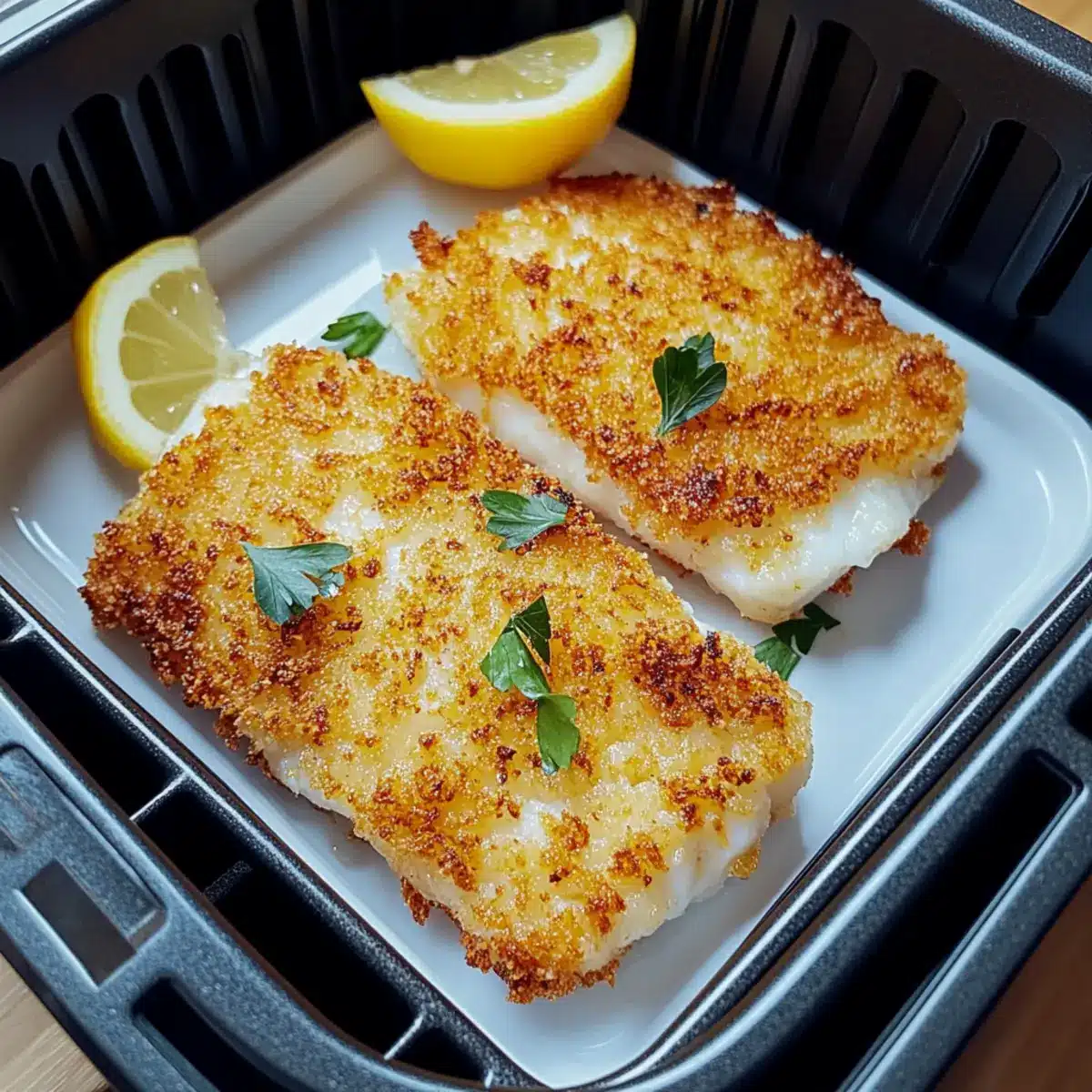 Remove the crispy cod from the air fryer, allowing them to cool slightly. Serve immediately with fresh lemon slices and a sprinkle of chopped parsley for a burst of flavor. This Crispy Air Fryer Cod Fish is not only a healthy alternative but also a meal sure to impress everyone at your table!