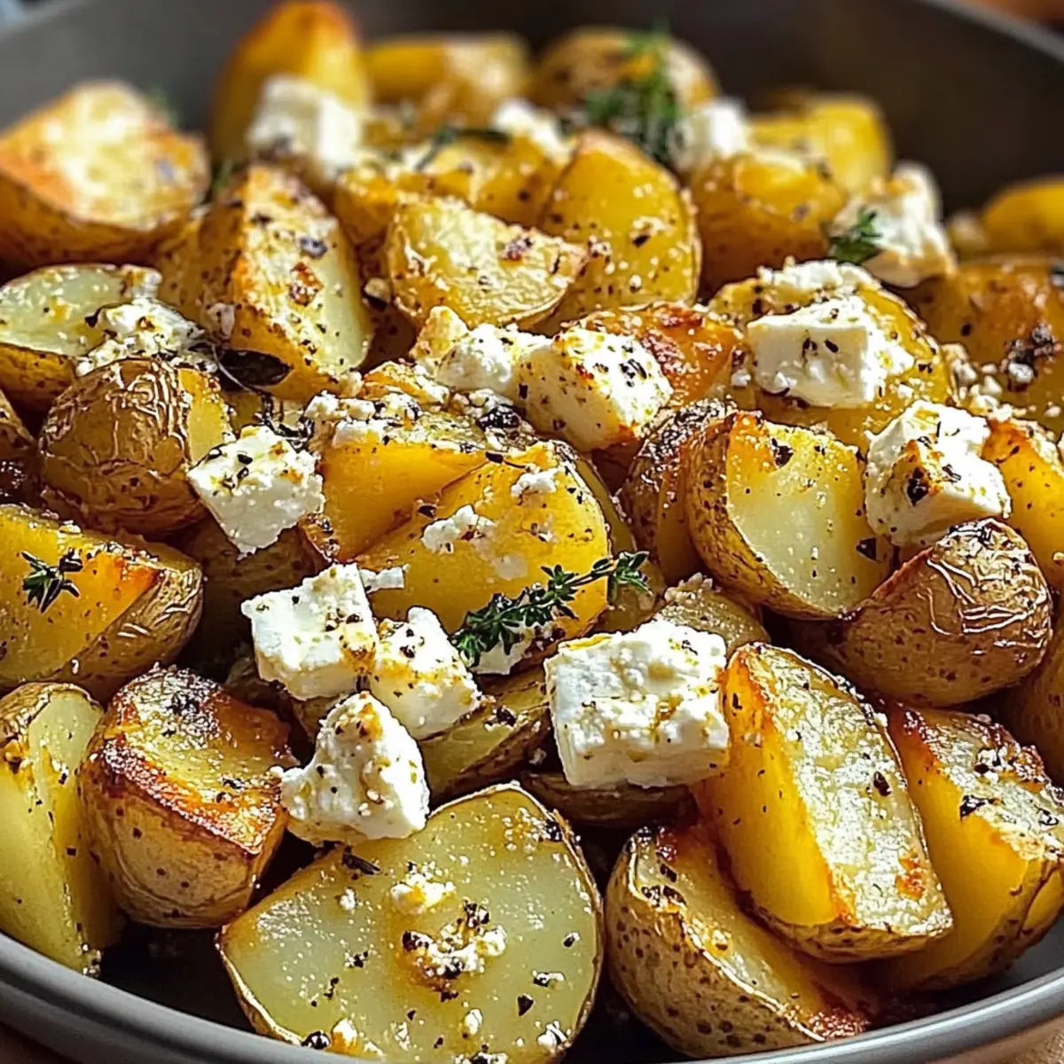 Dive into the magic of Crispy Roasted Potatoes with Baked Feta and Garlic and transform your dining experience into something extraordinary!