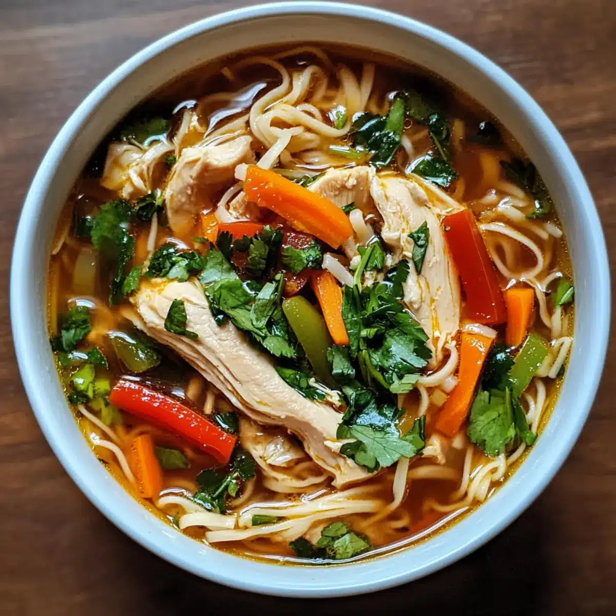 These Ginger Garlic Chicken Noodle Soup components are perfect for meal prep, making your busy weeknights a breeze! You can chop all your vegetables (carrots, bell pepper, and bok choy or spinach) and store them in airtight containers in the refrigerator for up to 3 days. Additionally, cook and store the chicken and broth mixture separately up to 24 hours ahead to maintain quality. When you’re ready to enjoy, simply reheat the broth and chicken, then add the vegetables and noodles, cooking according to package instructions. This way, you’ll have a comforting bowl of soup that’s just as delicious without the fuss—perfect for those cozy evenings when time is limited!