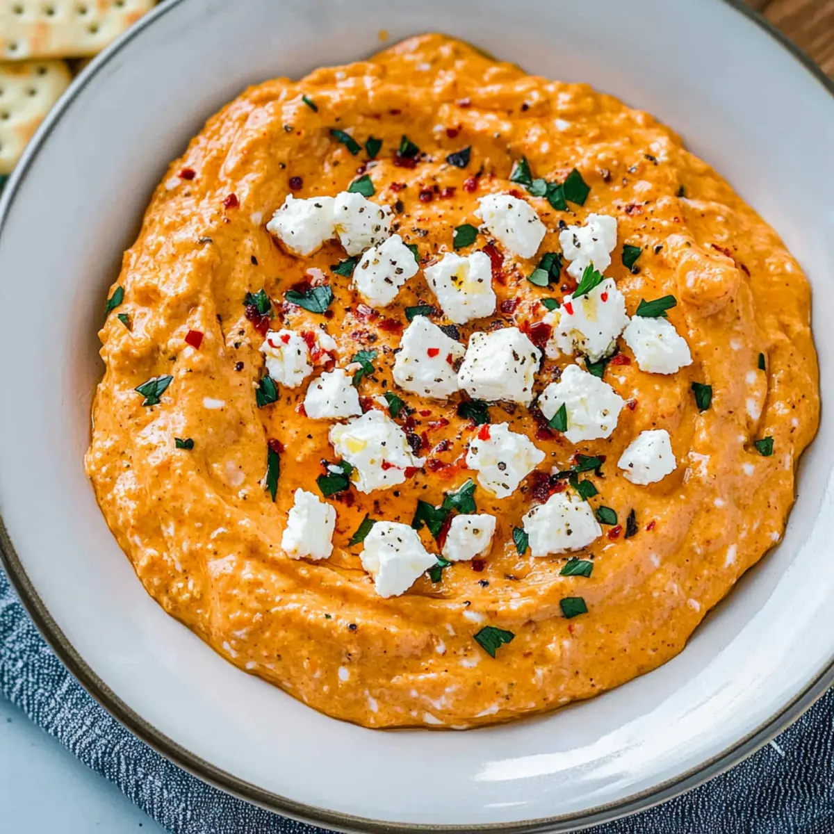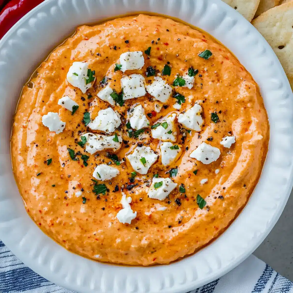 Simplicity makes this dip a dream for busy home cooks. Ready in just 5 minutes, it’s a perfect appetizer that’s both impressive and easy. Flavorful fusion of creamy feta and smoky roasted red peppers creates a deliciously unique taste profile. Whether you serve it for a casual gathering or an elegant dinner, it’s bound to be a hit—just like my Spinach Artichoke Dip! Versatile enough to accommodate various dippers, it pairs wonderfully with crispy pita chips, fresh veggies, or even warm pita bread. Don’t forget, it’s vegetarian and gluten-free (with the right dippers), making it suitable for everyone at your table!