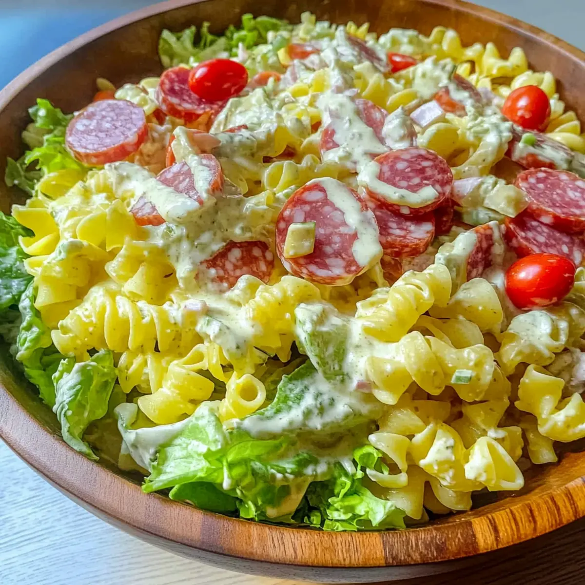 - Zest Boost: Add a squeeze of lemon juice to brighten flavors and enhance the overall freshness of your Grinder Pasta Salad.