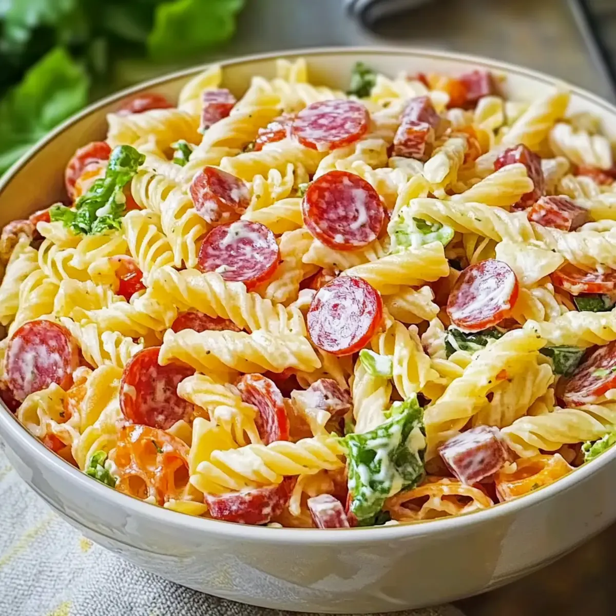 - Salami (1/2 cup) – Brings richness and depth; skip for a vegetarian version or replace with additional veggies.
