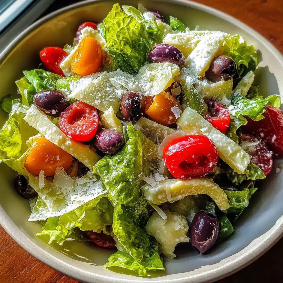 With the summer sun peeking through the kitchen window, I’m reminded of the vibrant, sun-soaked flavors found in a classic Italian Salad. This dish is my go-to for those bustling weeknights as it’s quick and adaptable, transforming your simple greens into a fresh celebration of taste in just 15 minutes. Crisp romaine lettuce, zesty pepperoncini, and briny olives dance together harmoniously, making it both nutritious and delightful to the senses. The best part? You can easily customize it with proteins or seasonal veggies to suit your cravings or use what’s in the fridge. So, whether you’re hosting a potluck or just jazzing up dinner, this Italian Salad brings a touch of Mediterranean flair right to your table. What will you add to your version?
