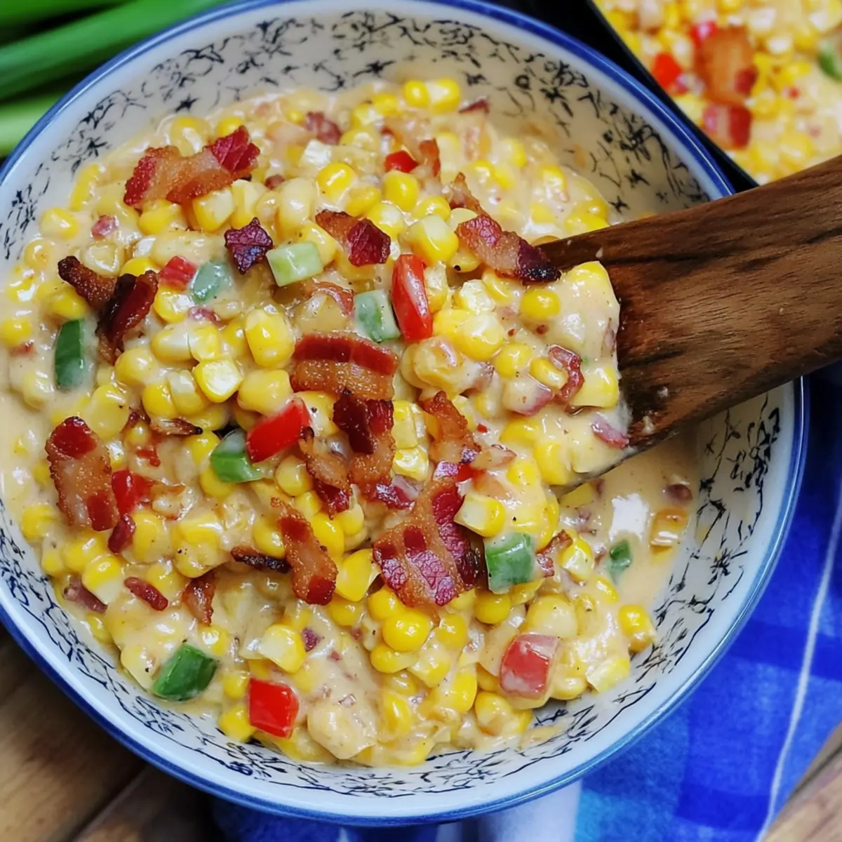 Creamy Louisiana Cream Corn Maque Choux with Savory Bacon