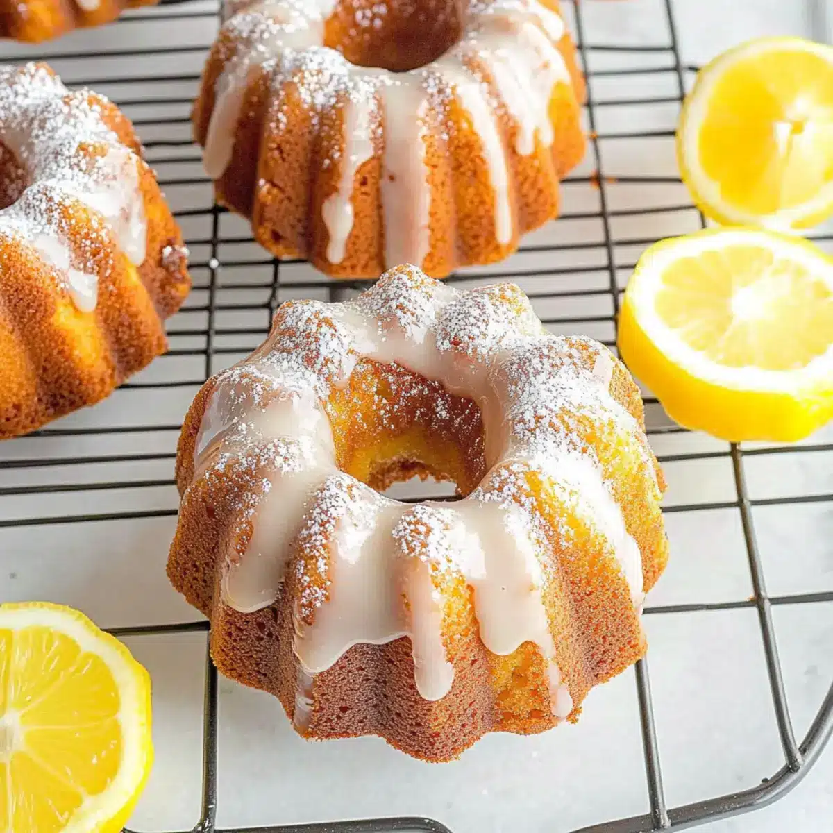 Tangy Lemon Glaze: Drizzling a lemon glaze over the cakes elevates the flavors while adding a delightful shiny finish that’s visually appealing.