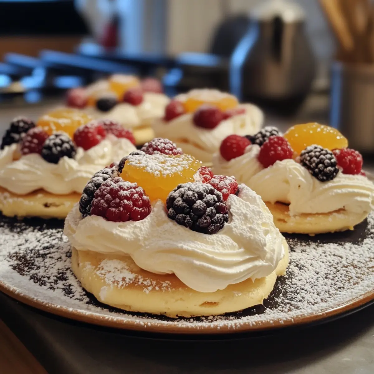 Fresh Fruit Salad: A medley of seasonal fruits like strawberries, kiwi, and oranges adds a burst of color and freshness, perfectly contrasting the sweet meringues. A light drizzle of honey can elevate this dish even more.