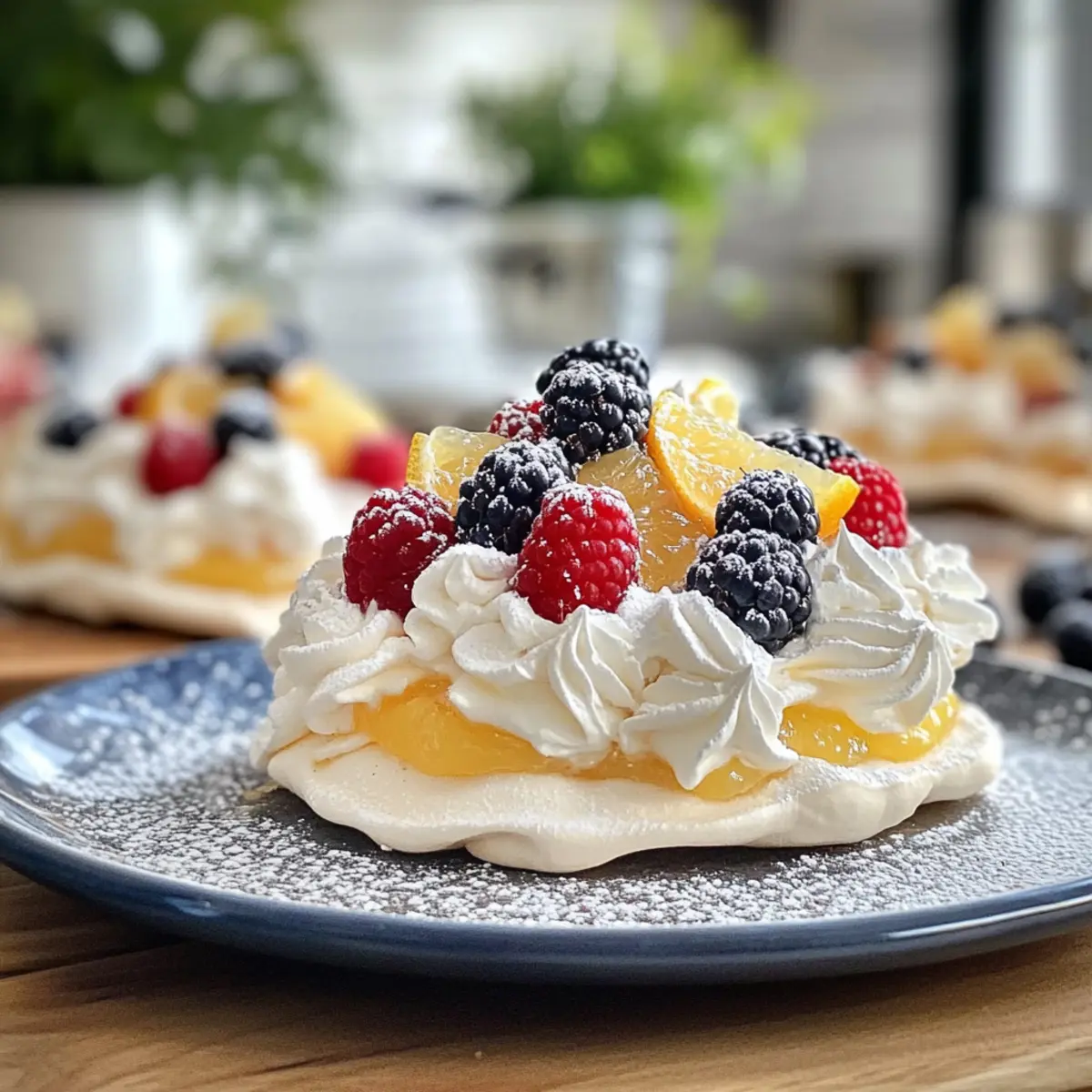 Picture-Perfect Presentation: Topped with fresh berries and a light dusting of powdered sugar, these meringues are as beautiful as they are delicious.