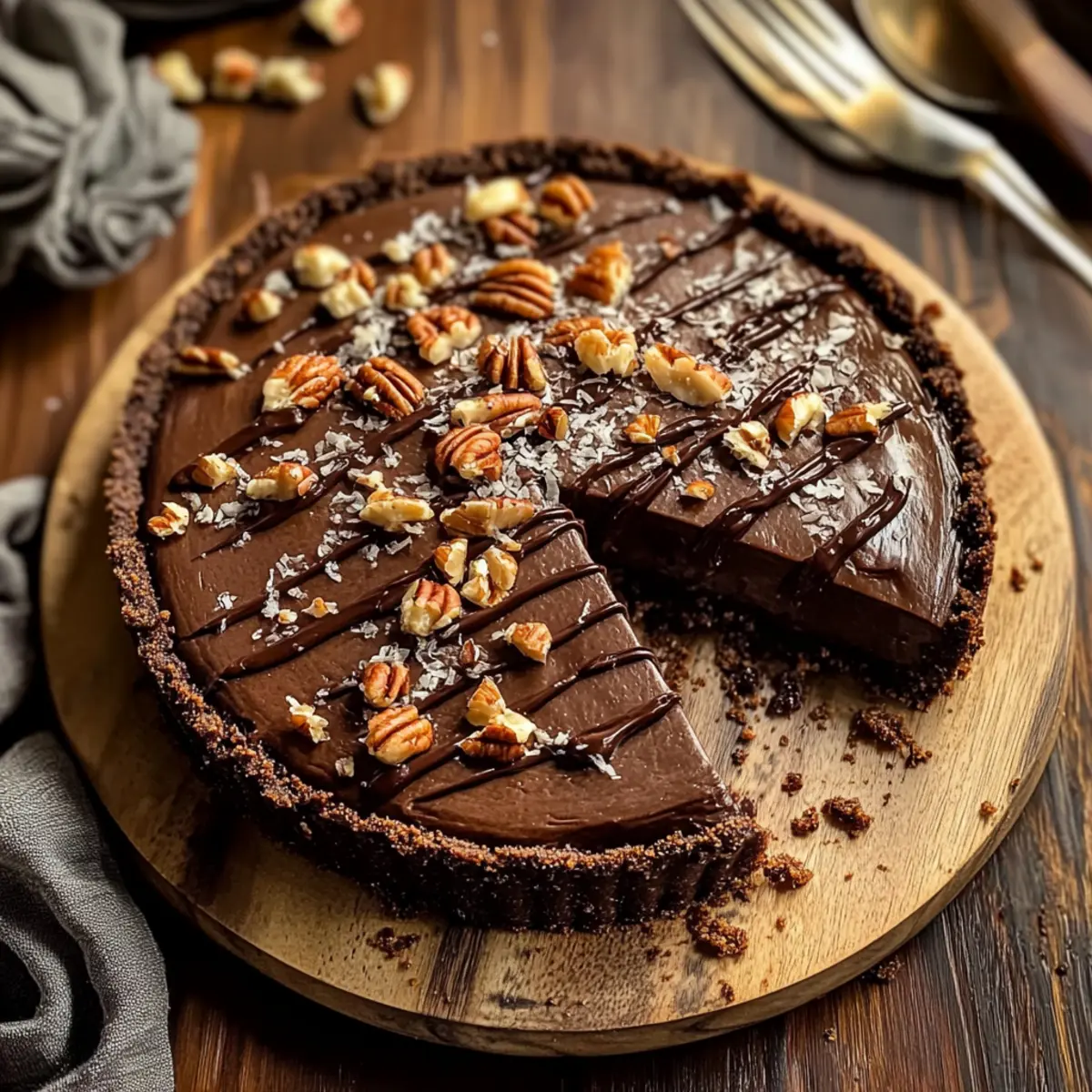 When ready to serve, you can enhance your pie by topping it with shaved white chocolate or additional pecans for a gourmet finish. Use a sharp knife to slice the pie into generous servings, revealing the stunning layers inside. This dessert is perfect for special occasions or simply as a treat to enjoy at home!