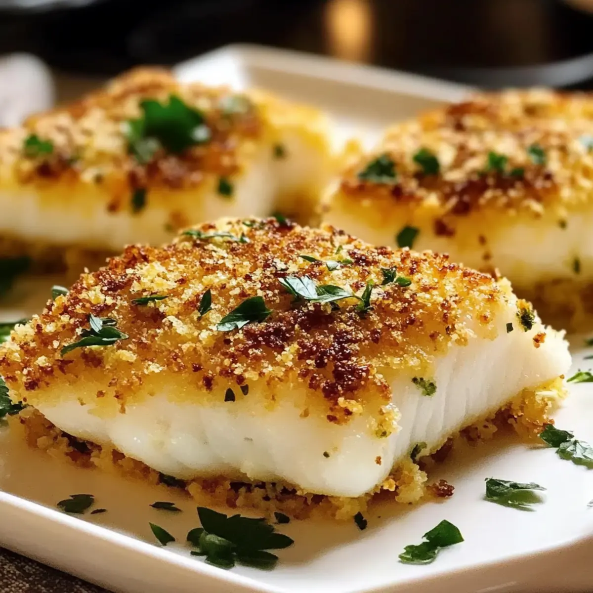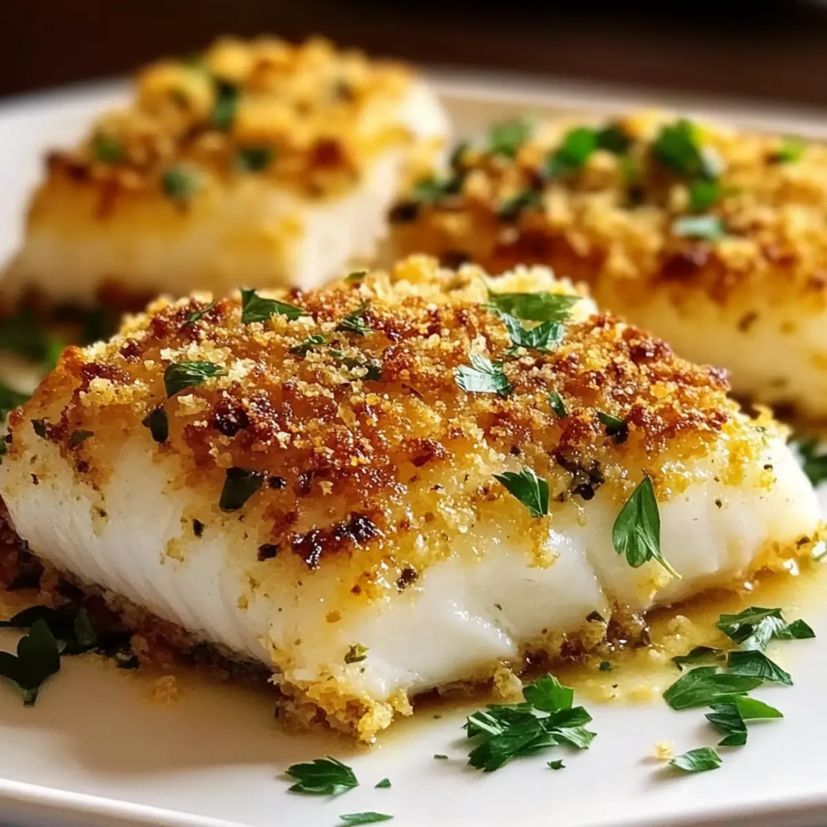 Once out of the oven, optionally garnish your crispy Parmesan Crusted White Fish with freshly chopped parsley for a pop of color and freshness. This final touch not only enhances visual appeal but also adds a hint of flavor that ties the dish together beautifully before serving.