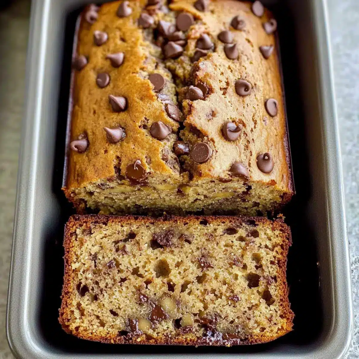 Evenly divide the batter between your prepared loaf pans, smoothing the top with a spatula. If desired, sprinkle extra chocolate chips on top for an inviting finish. This step adds an extra touch of sweetness and visual appeal to your delicious creation.