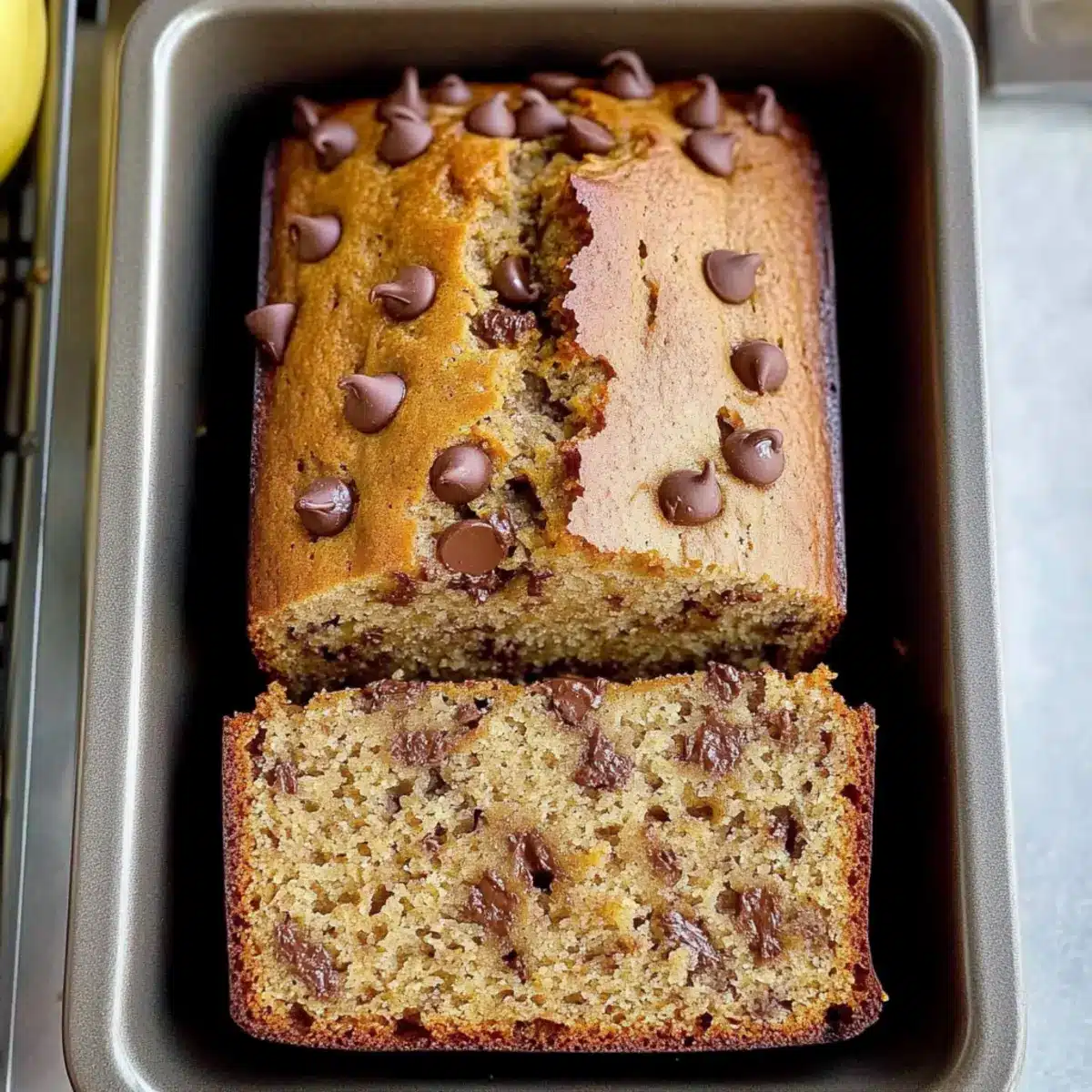 Once baked, remove the Peanut Butter Chocolate Chip Banana Bread from the oven and let it cool in the pans for 15 to 20 minutes. This allows the bread to set and makes it easier to transfer to a wire rack without falling apart. After cooling, move it to the rack to cool completely, inviting that warm, comforting aroma to fill your kitchen!
