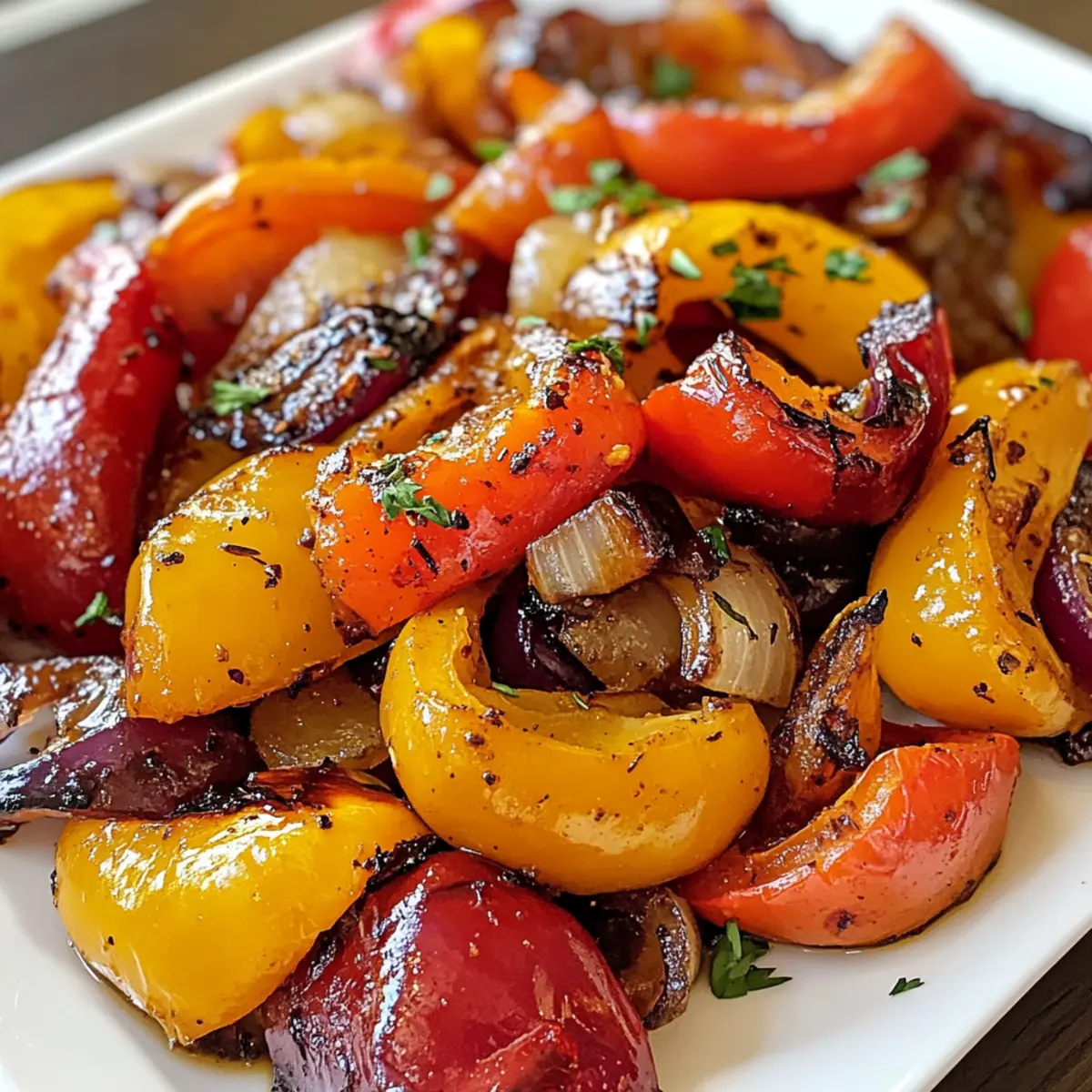 As I stood by the oven, the tantalizing aroma of Roasted Peppers and Onions wafting through the kitchen reminded me why I fell in love with cooking in the first place. This vibrant vegan side dish is not only a feast for the eyes but brings a delightful balance of smoky and sweet flavors to any meal. With just 5 minutes of prep time and around 30 minutes in the oven, it’s the perfect companion for busy nights when I want to put something wholesome on the table without the hassle. Plus, it’s naturally gluten-free and a fantastic way to sneak in veggies if you’re meal prepping for the week. Curious about how to elevate your dining experience with this colorful blend? Let’s dive into this deliciously satisfying recipe!
