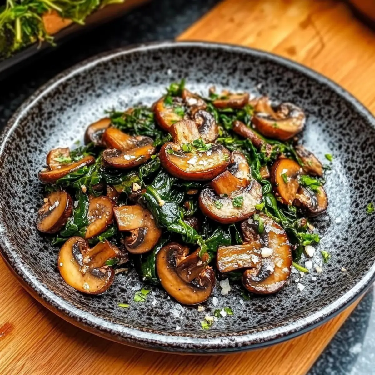 Remove the skillet from the heat and transfer the sautéed mushrooms with spinach to a serving dish. This dish is best served hot, allowing the flavors to shine. Pair it as a delightful side alongside grilled meats or mix into grain bowls for a nutritious addition to your meal. Enjoy your vibrant and flavorful creation!