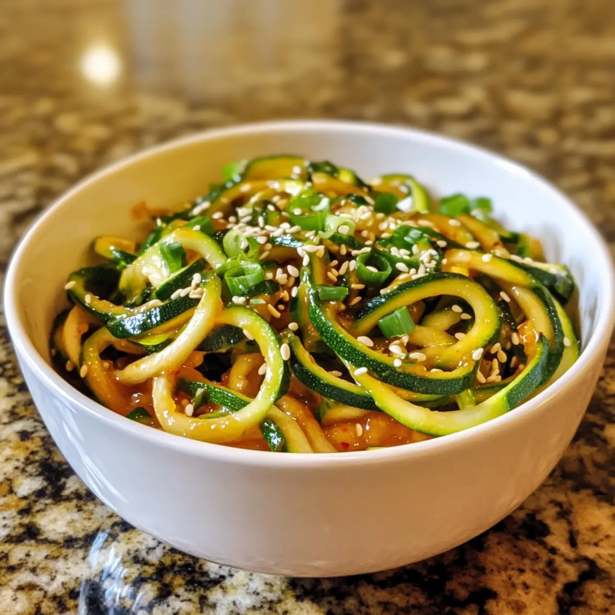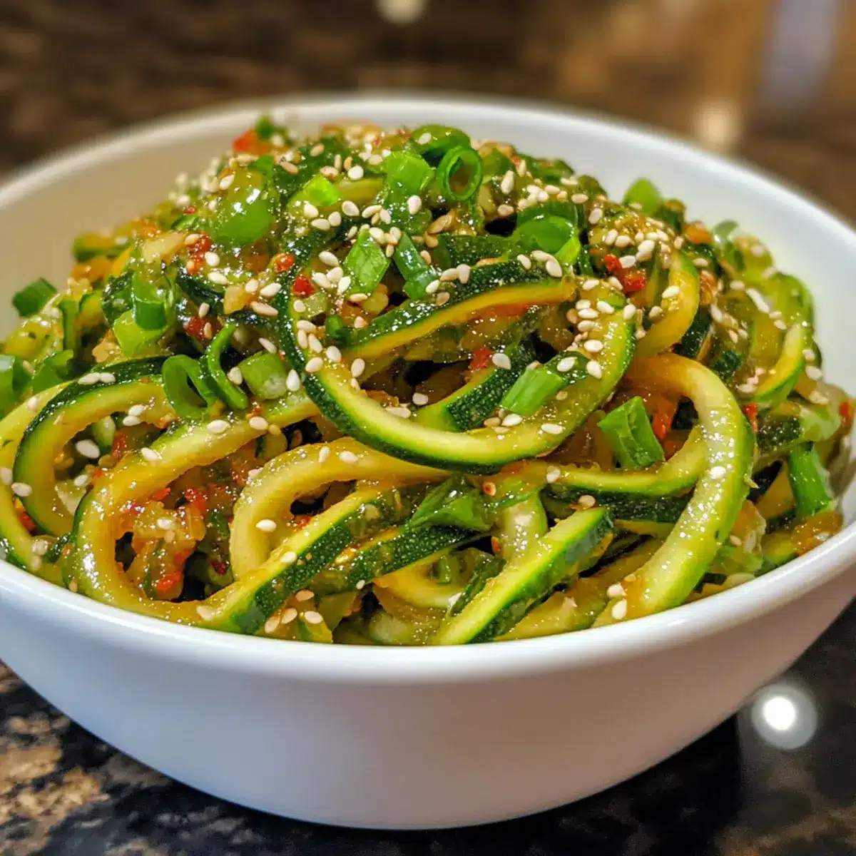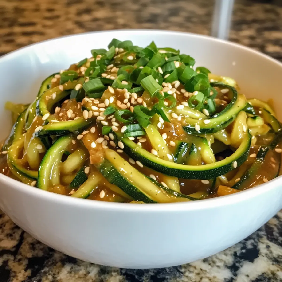 Transfer the zoodles to a serving plate and garnish with toasted sesame seeds and chopped green onions for added crunch and color. Serve immediately to enjoy them fresh and crunchy, or refrigerate for a few hours to let the flavors meld together. This dish pairs beautifully with additional proteins for a more filling meal!