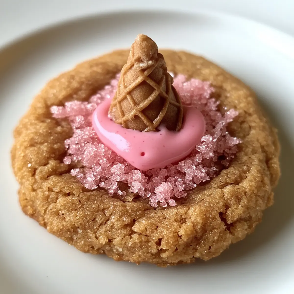 Once baked, remove the cookies from the oven and let them cool on the baking sheet for about 3-5 minutes. After this time, take your Hershey’s Strawberry Ice Cream Cone Kisses and gently press one into the center of each cookie while they are still warm. This step is essential for that melty, chocolatey goodness waiting inside your delightful treats.