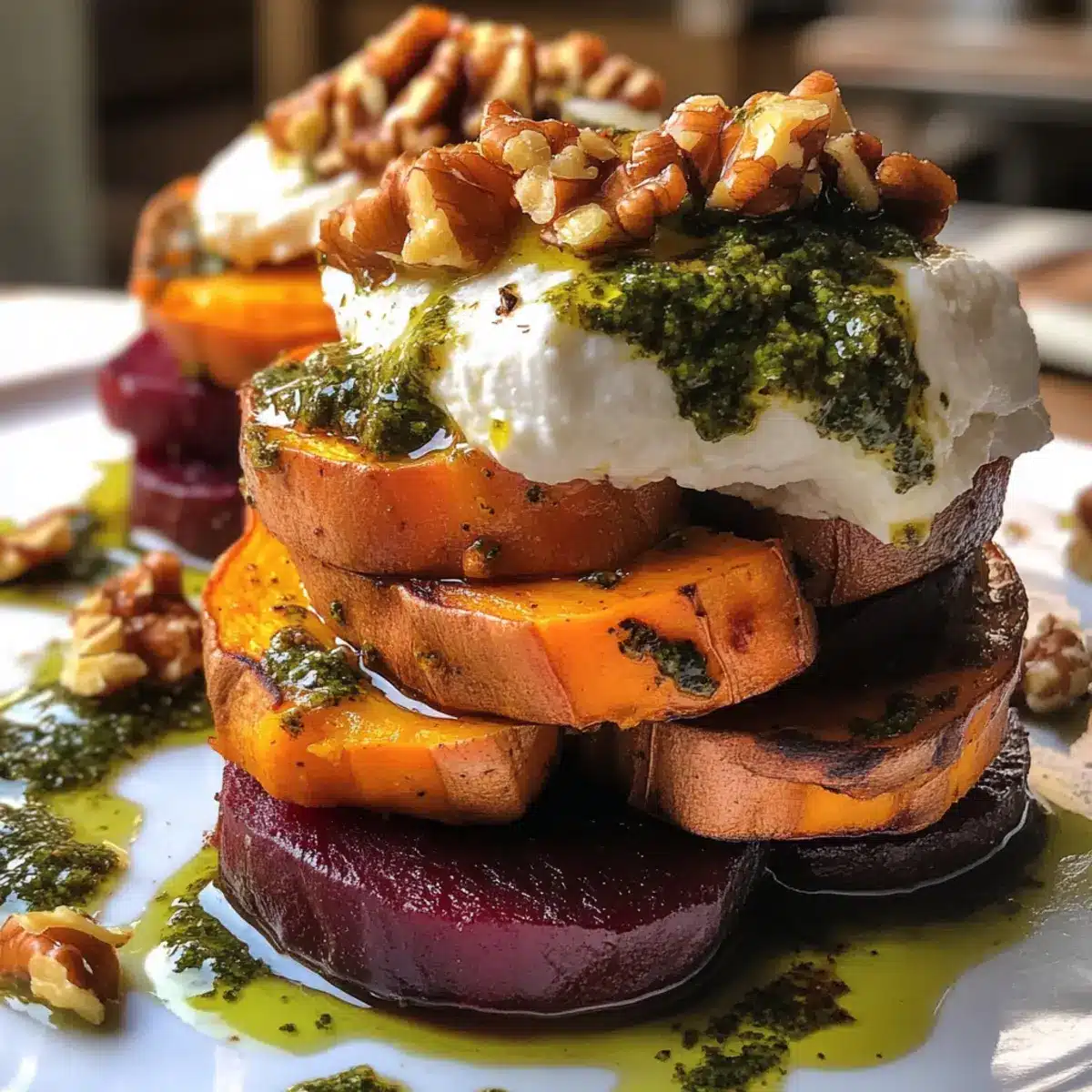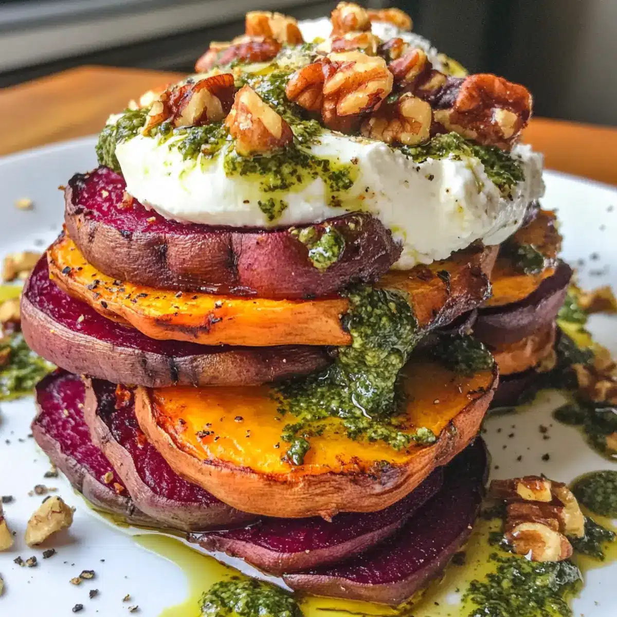 Delicious Sweet Potato & Beet Stacks with Creamy Burrata