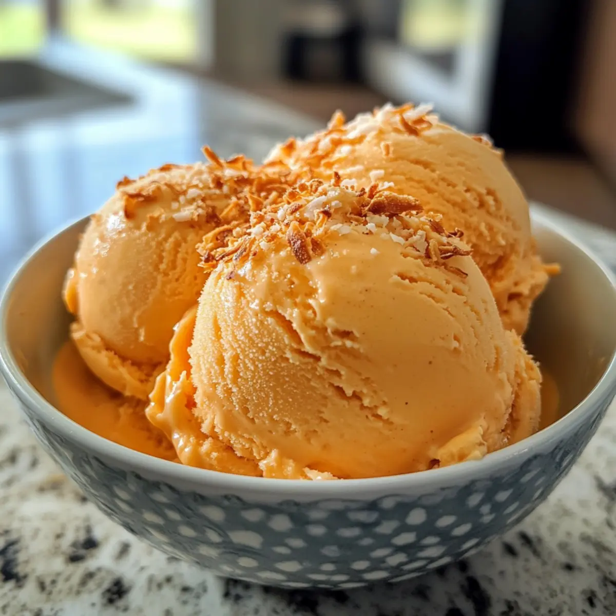 - When ready to serve, scoop into bowls or cones and sprinkle with toasted coconut flakes.