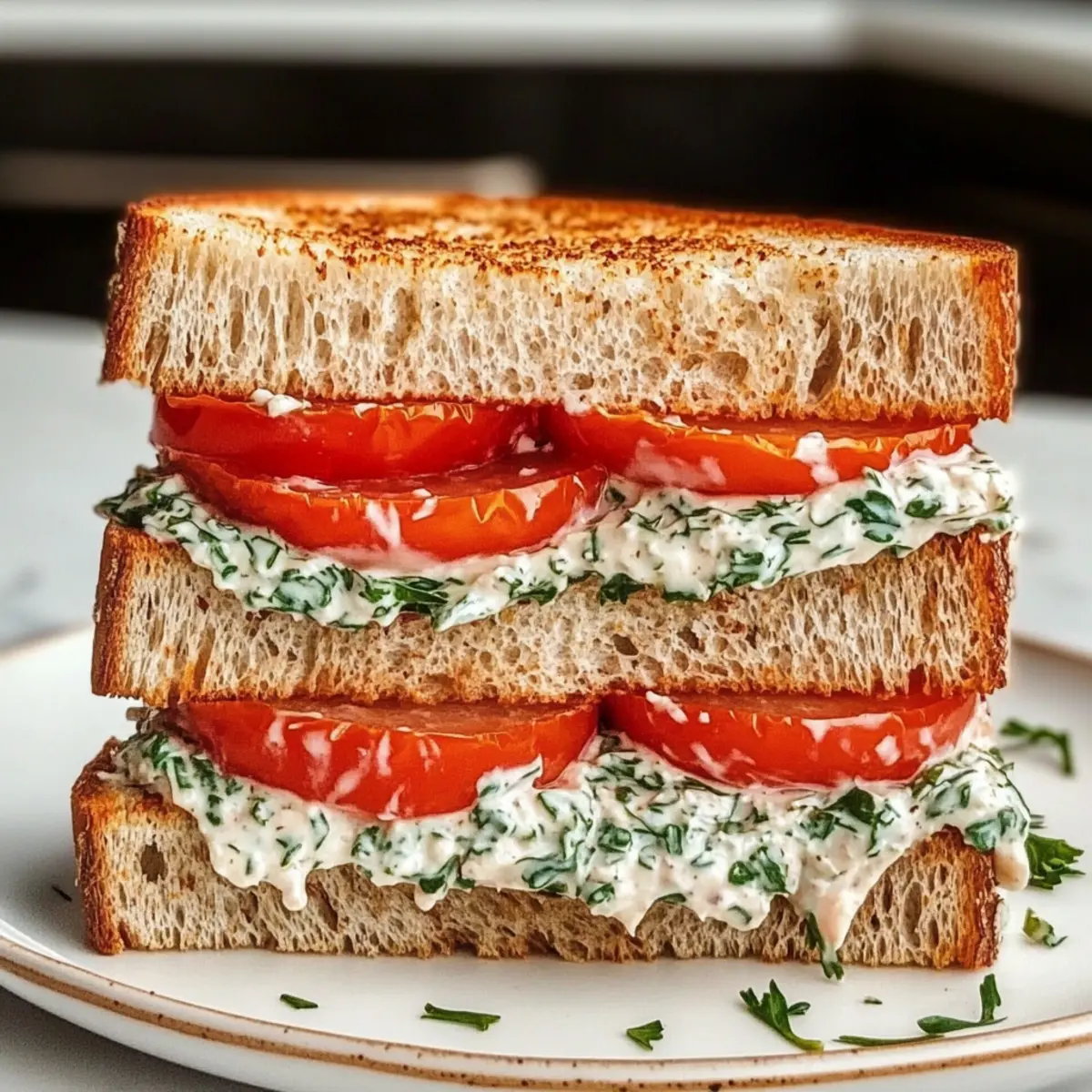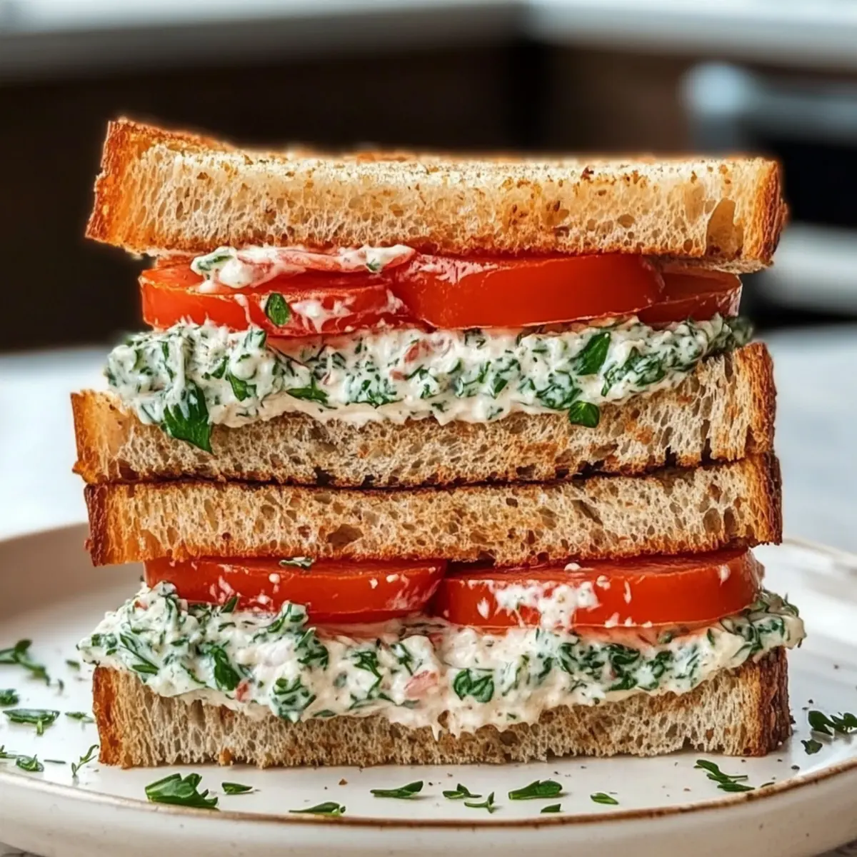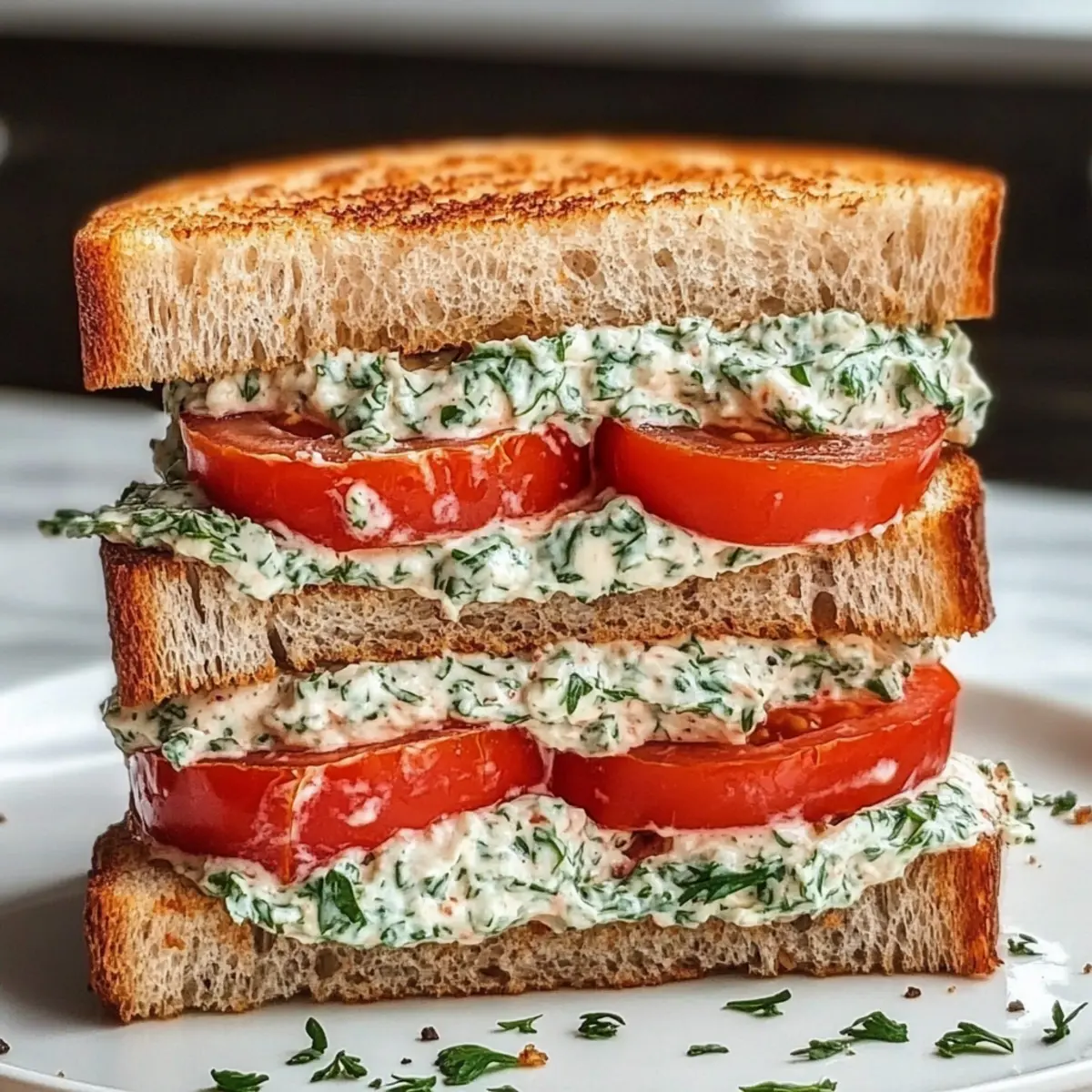 Irresistible Tomato Sandwich with Creamy Herb Spread Delight