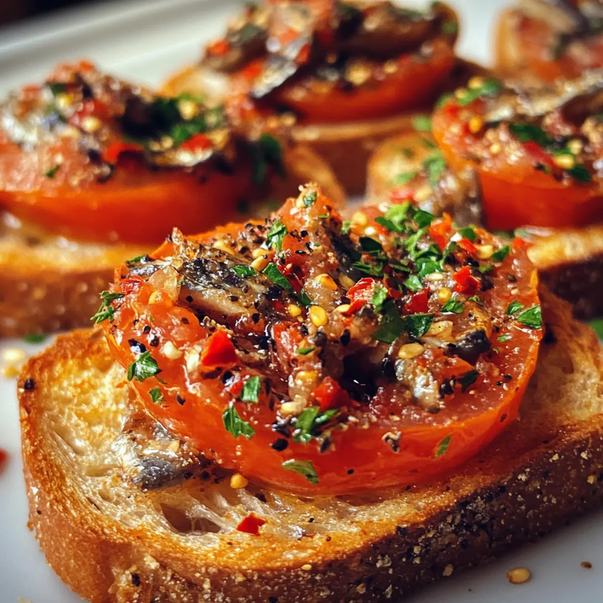 These Tomato Sardine Toasts are perfect for meal prep enthusiasts looking to save time on busy weeknights! You can prepare the rich tomato spread up to 3 days in advance; simply make it according to the recipe and store it in an airtight container in the refrigerator to keep it fresh and flavorful. The sardines can remain sealed in their tin until you’re ready to serve for maximum taste and quality. When it’s time to enjoy your toasts, toast the bread and assemble them with the previously made spread and sardines. This way, you’ll have a delightful Mediterranean appetizer ready with minimal effort, just as delicious as if you made it fresh!