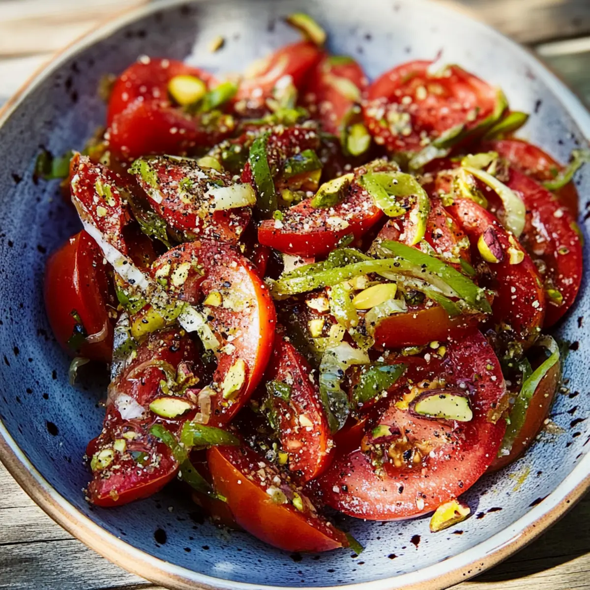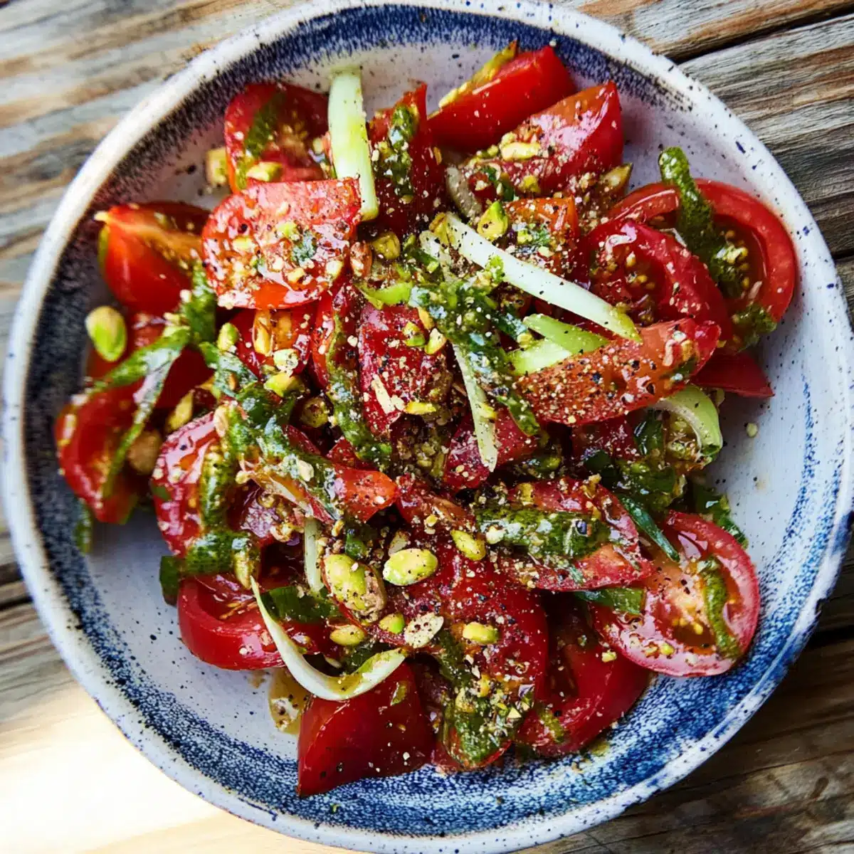 Room Temperature: If serving at a gathering, keep the salad out for no longer than 2 hours to ensure food safety and maintain the vibrant taste of your Tomatoes with Pistachios.