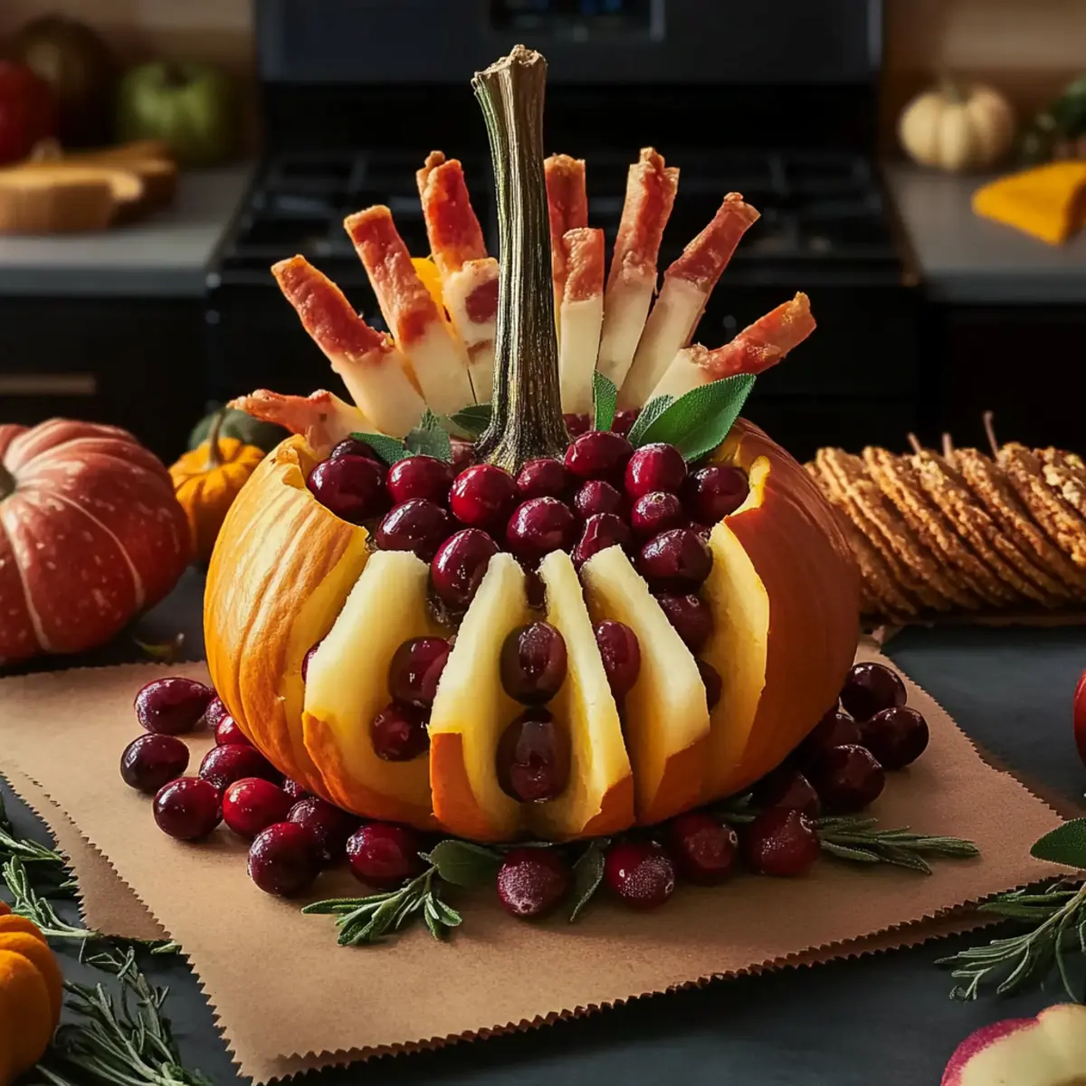 Pumpkin Soup: Silky pumpkin soup offers warmth and a creamy complement to your charcuterie board, perfect for drizzling over fresh bread.