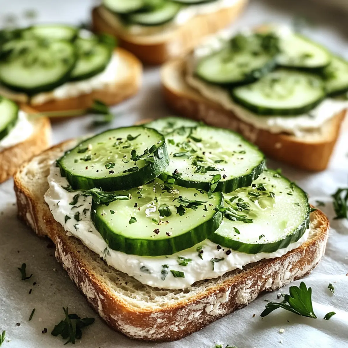 Very! To keep your sandwiches fresh, place them in an airtight container and store in the refrigerator for up to 4 days. This helps maintain their crispness, especially with the cucumbers. If you know you’ll have leftovers, consider wrapping each sandwich individually in plastic wrap to prevent them from sticking together.