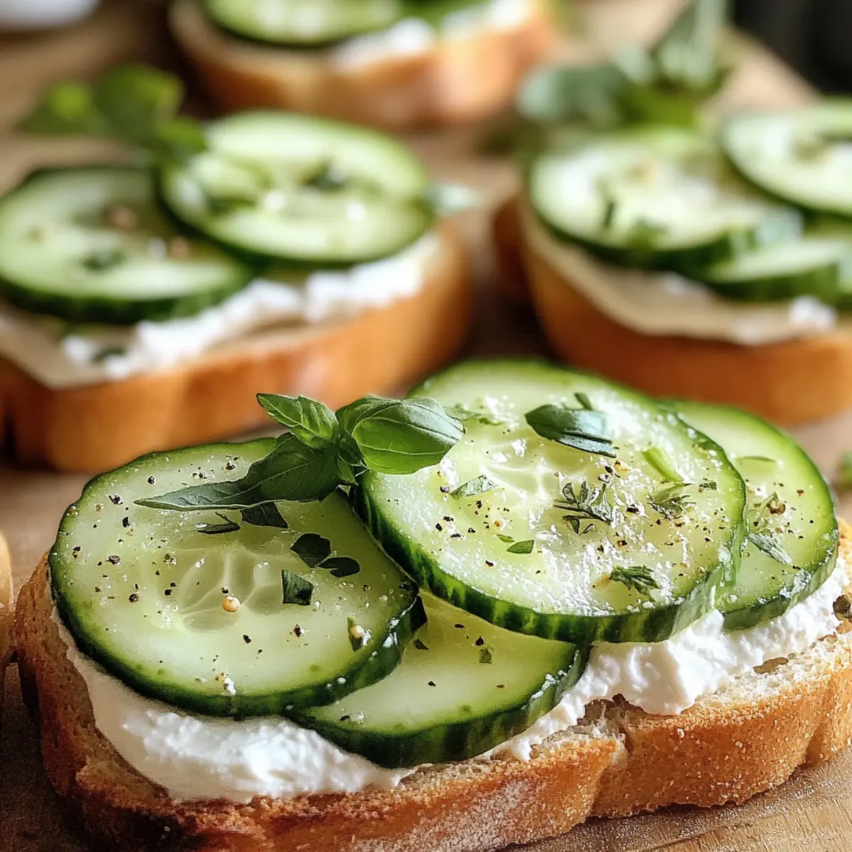 On half of the prepared bread slices, layer the cucumber rounds beautifully, slightly overlapping them for a nice presentation. Sprinkle a touch of freshly cracked pepper and additional herbs if desired. This adds an aromatic kick and enhances the overall flavor of the sandwiches.