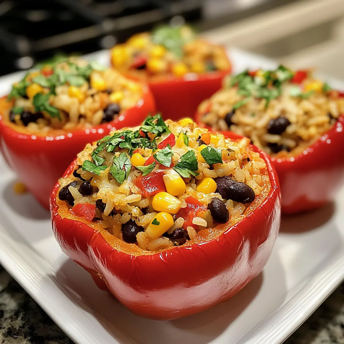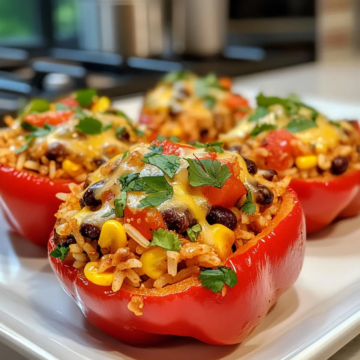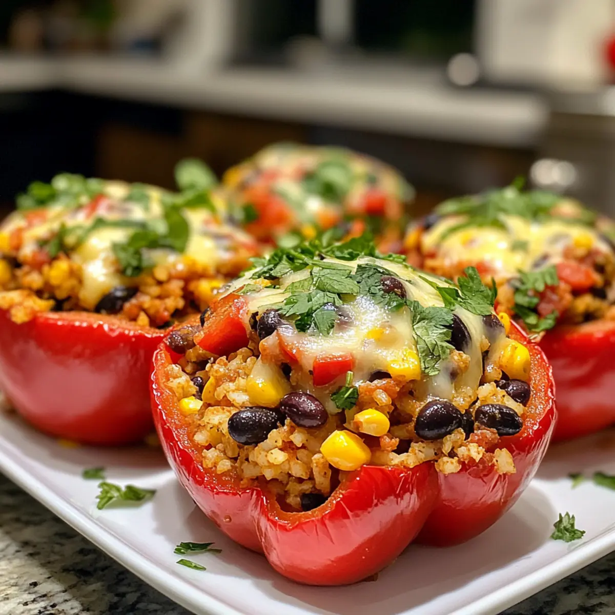 Garnish for Flair: A sprinkle of freshly chopped cilantro not only adds a pop of color but also enhances the flavor of your stuffed peppers.